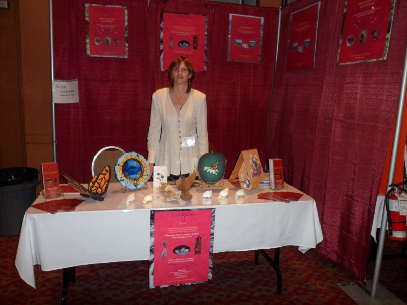 Photos de mon exposition au Salon des arts décoratifs de Boucherville qui se déroulait du 15 au 17 octobre 2010. J'y présentais quelques peintures sur bois ou autres activités de loisir créatif sur lesquelles je voulais offrir des ateliers aux touristes en vacances en Gaspésie.